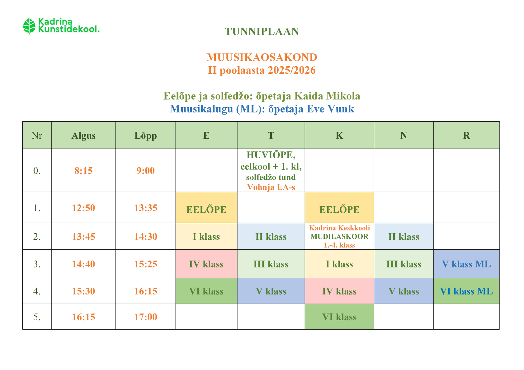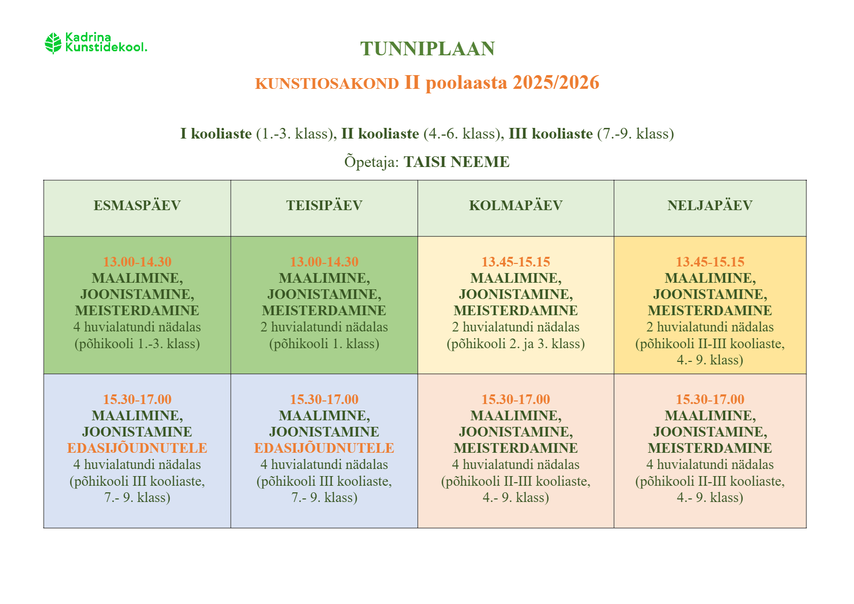Esteetika 1.–3. klass (Vaheldumisi Janaga- palmisaal ja suur saal)